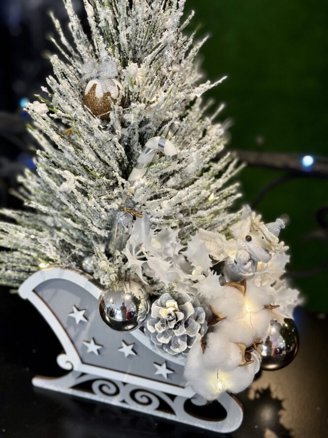 1 adet el yapımı, yılbaşı özel tasarım, peri led ışıklı, geyik detaylı kızak.