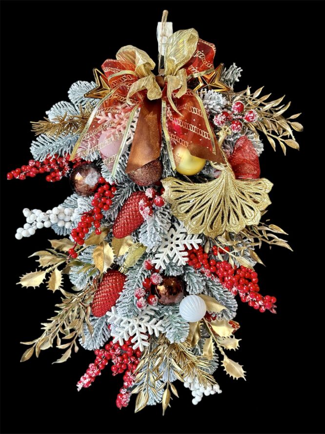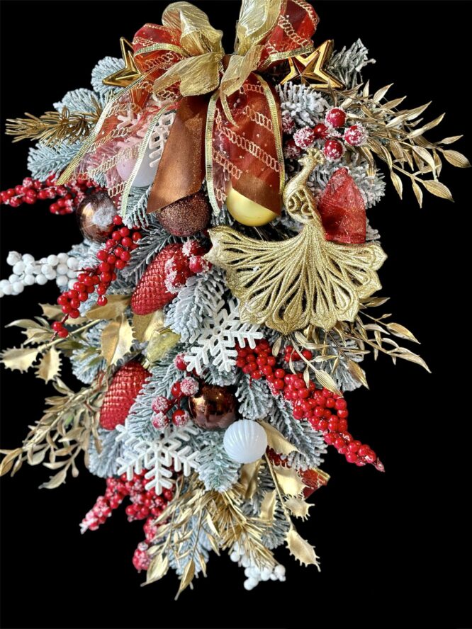 1 adet el yapımı, yılbaşı özel tasarım karlı çelenk.