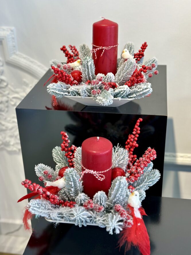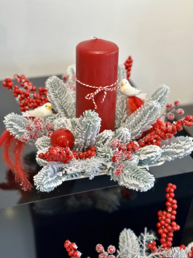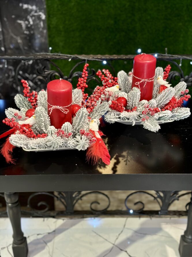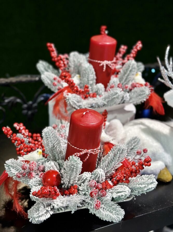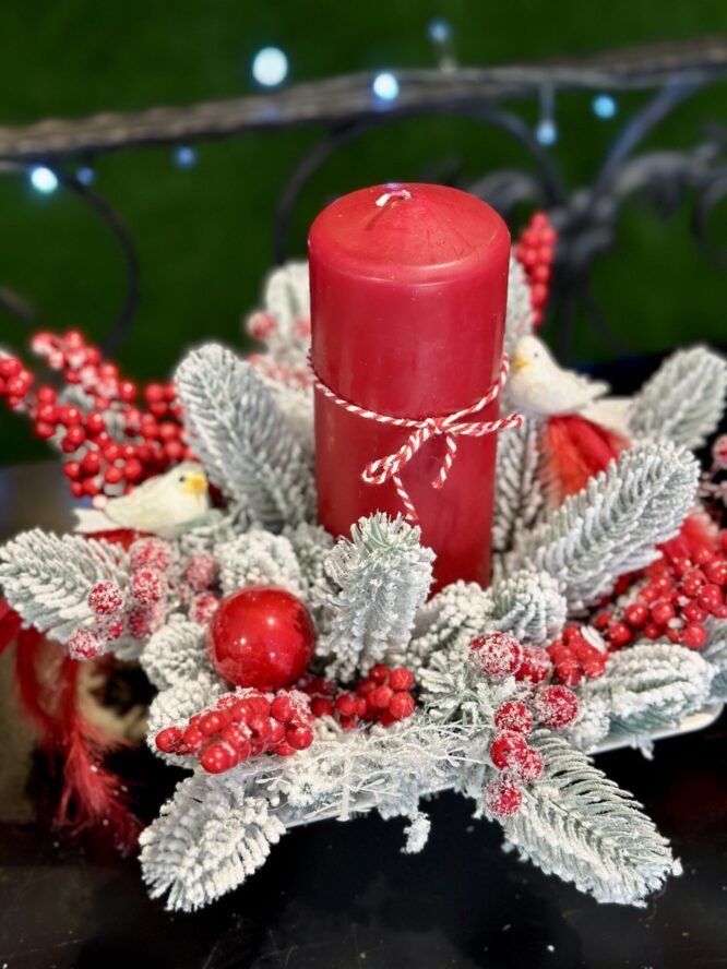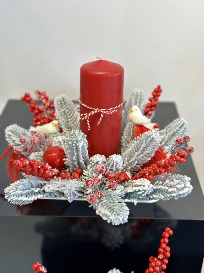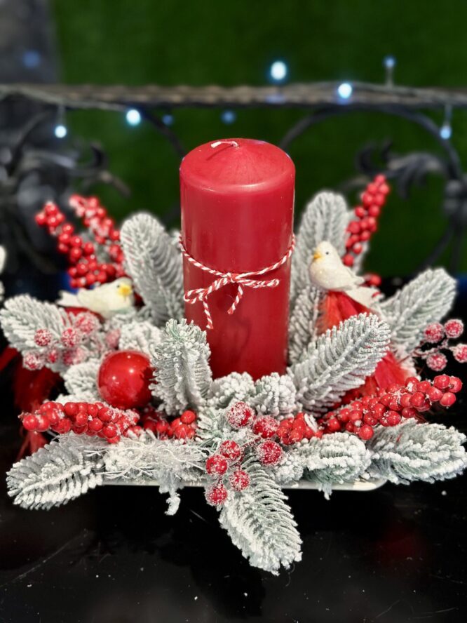1 adet el yapımı, yılbaşı özel tasarım masa üstü dekor. (Mum dahildir)